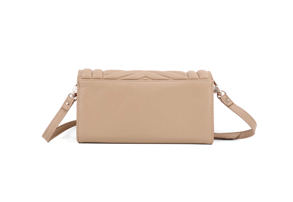 La billetera grande Érica se destaca por su versatilidad: podés usarla como billetera dentro de otro accesorio, o como bandolera individual gracias a su correa desmontable para llevar al hombro o cruzada. Se adapta a cualquier ocasión y es un must-have que vas a amar llevar a todos lados. Confeccionada en ecocuero de efecto brillante con textura suave y un matelaseado exclusivo, que le aporta un acabado único y distinguido.