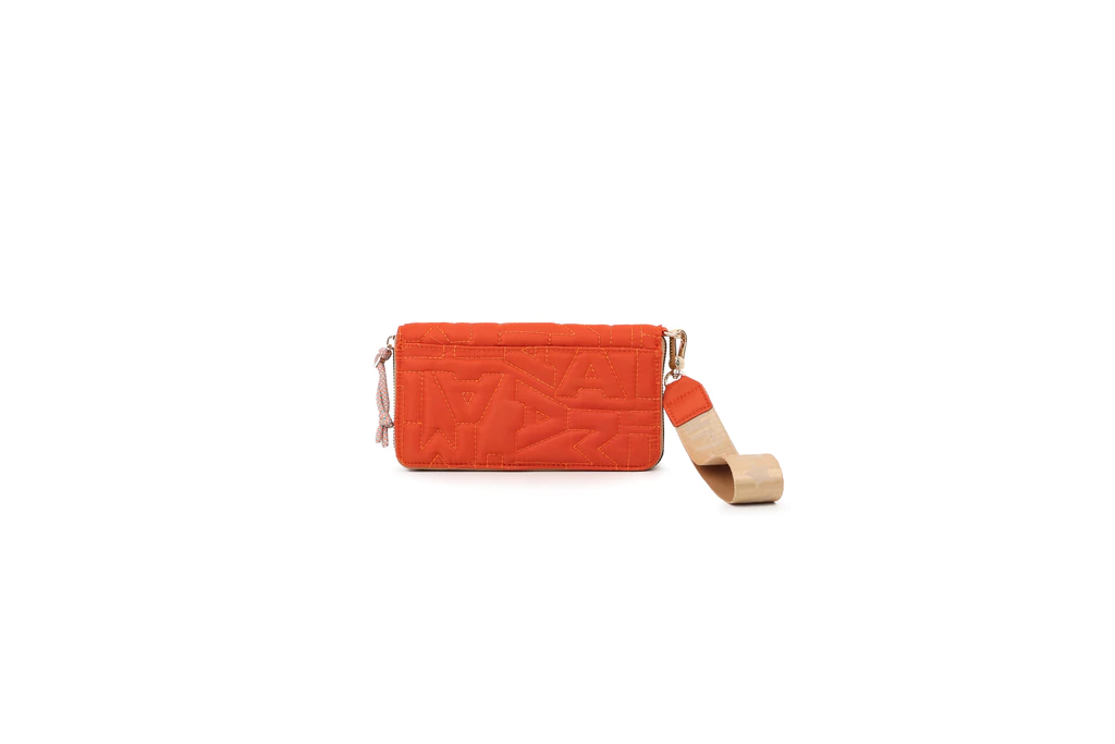La billetera mediana Emma está confeccionada en nylon reciclado, con un monograma matelassé exclusivo que le da un estilo único. Su material es súper resistente y fácil de lavar, y los cierres plásticos y cordones decorativos le aportan un toque de originalidad y comodidad. En su interior encontrarás múltiples bolsillos para organizar tarjetas, dinero y documentos con total funcionalidad. Ideal para quienes buscan un accesorio clásico con un toque moderno.