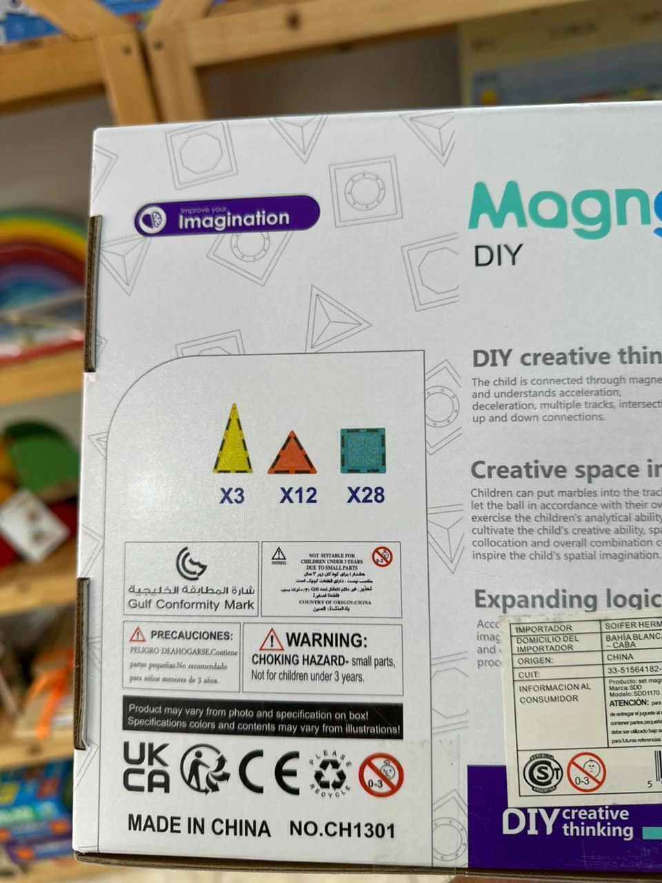 Juguete de imanes con piezas livianas, coloridas y amigables con las manos pequeñas de los niños.