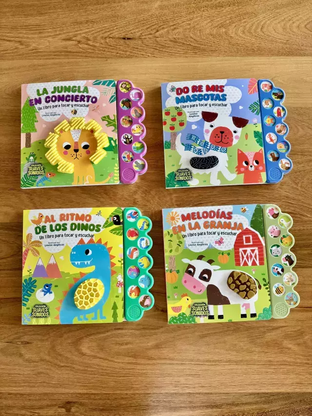 En "Suaves Sonidos - La Jungla en Concierto", vivirás una experiencia multisensorial única. Este libro interactivo presenta texturas fascinantes que te permitirán conocer a adorables animalitos de la selva. Además, cuenta con 10 botones que emiten diferentes sonidos de la jungla, ¡haciendo que cada página cobre vida! Ideal para estimular la curiosidad y la imaginación de los más pequeños.